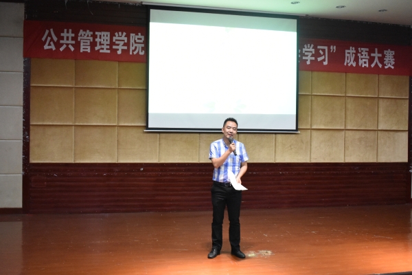 首先,李才俊书记为本次比赛致词。他强调“四自四会”活动是公共管理学院的特色活动,而成语大赛则体现了“学会学习”的内容,希望同学们能够在比赛中学习中国传统文化、学习成语,最后,预祝本次活动能够取得圆满成功。