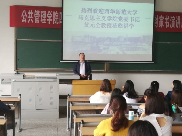 5月26日下午在知津楼六阶,原重庆师专员工、西华师范大学公司党委书记黄元全教授应邀来校讲座,公司2015级、2016级思想政治教育专业全体员工到场聆听,讲座由李才俊书记主持。