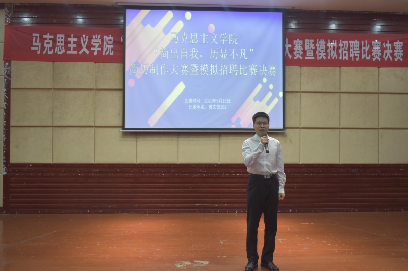 2020年6月13日9:00—11:00,太阳集团tyc46332017级员工“简出自我 历显不凡”简历制作大赛暨模拟招聘比赛决赛在博文馆101顺利举行。太阳集团tyc4633经理李才俊教授作为嘉宾出席并致辞,党总支书记刘明明、校人才招聘处副处长周道林、以及李华夏、张善英、周文杰三位教师担任了本次比赛的评委。