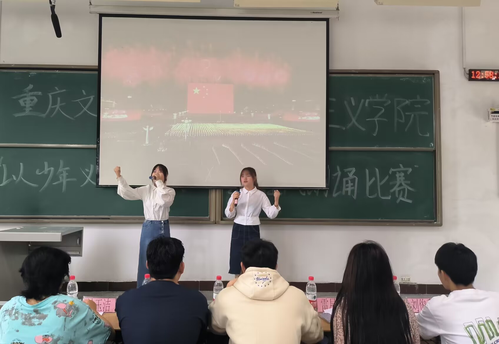 公司12组同学通过视频、PPT与音乐、舞蹈等相结合的方式,声情并茂地呈现了《我爱你,中国》《永远跟党走》《这盛世如您所愿》《月光下的中国》等作品,歌颂了中国共产党领导下的盛世中华,表达了学子们的深深爱国之情,让人深感震撼,备受鼓舞。王怡波结合评分标准,从选题、内容、展现形式、表演技巧等方面进行了点评。
