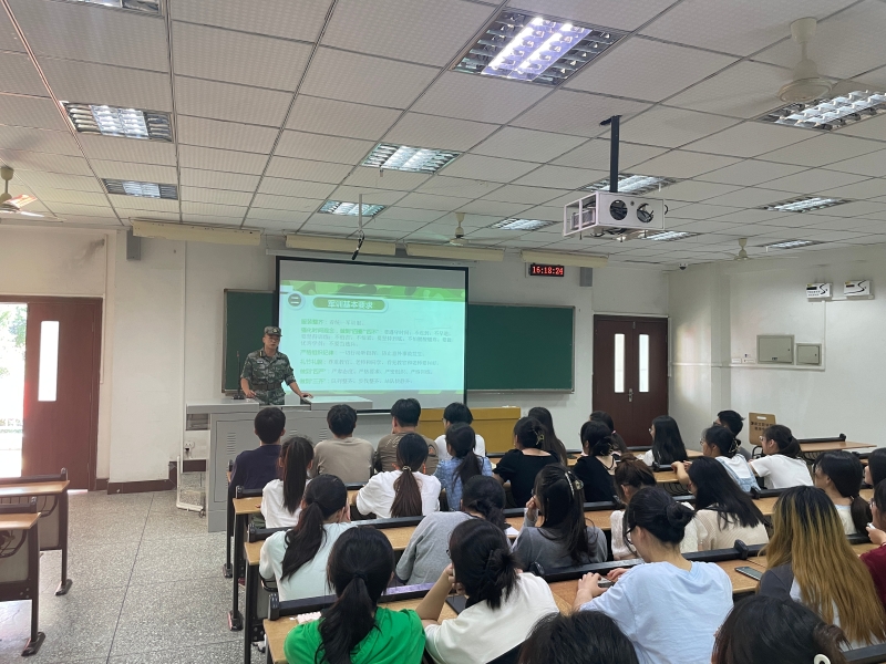 陈林就什么是军训、军训的基本要求、军训的基本内容以及注意事项等方面作了详细的讲解和分析。在互动交流环节,陈林对同学们提出的相关问题进行了细致的解答。李华夏领学了《太阳集团tyc4633员工军训管理规定》《太阳集团tyc4633员工军事训练减训和免训的规定》,提醒同学们在军训期间严格遵守规定中提到的“十个要”“十个不准”,时刻注意人身安全,严格请假手续,充分展现太阳集团tyc4633学子的良好精神风貌。