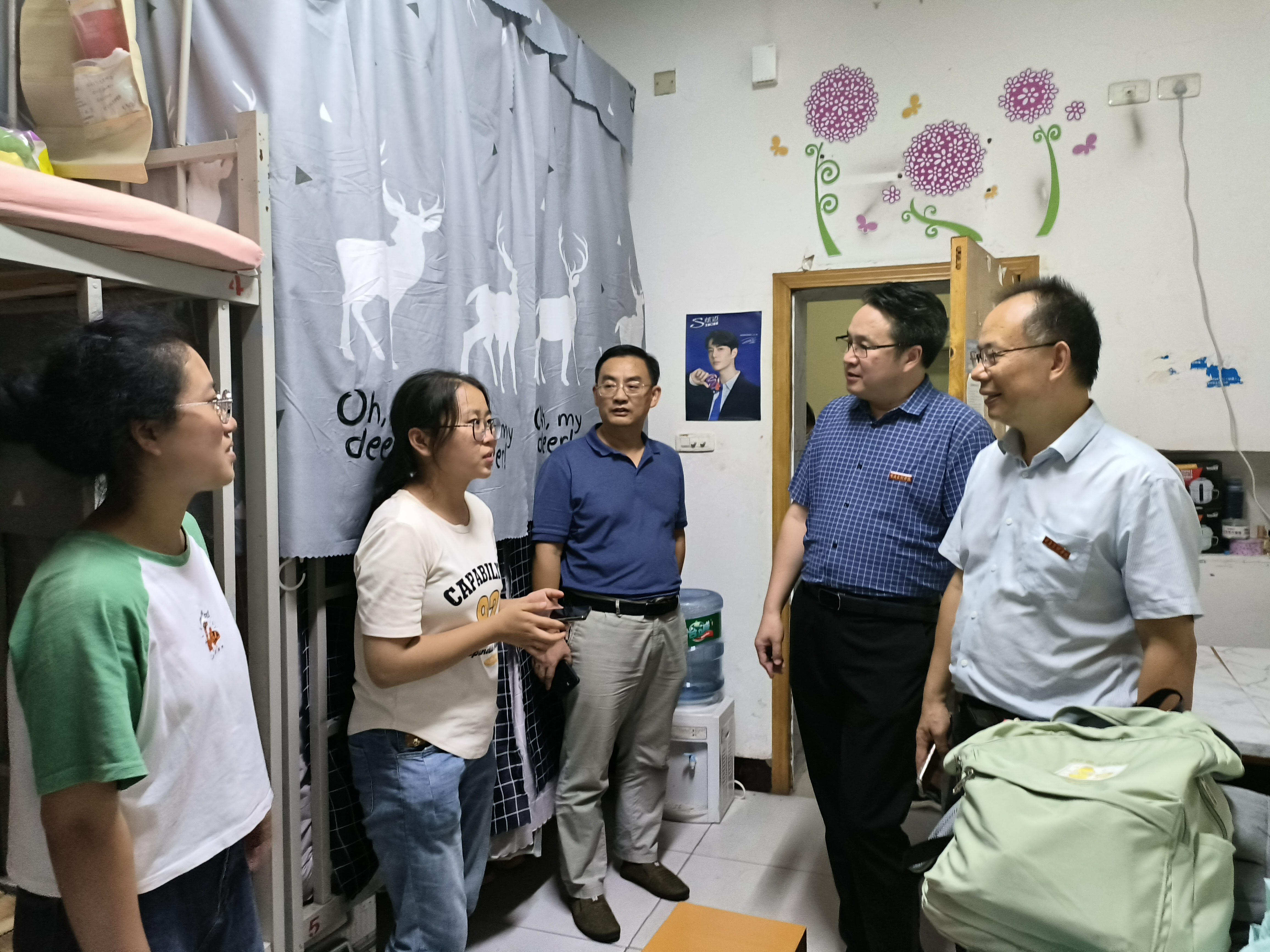 为进一步了解2023级新生入校情况,加强师生交流,2023年9月8日晚,公司党总支副书记、经理胡守敏,党总支书记杨正强,副经理李景国以及23级辅导员张善英深入新生宿舍开展了走访慰问。