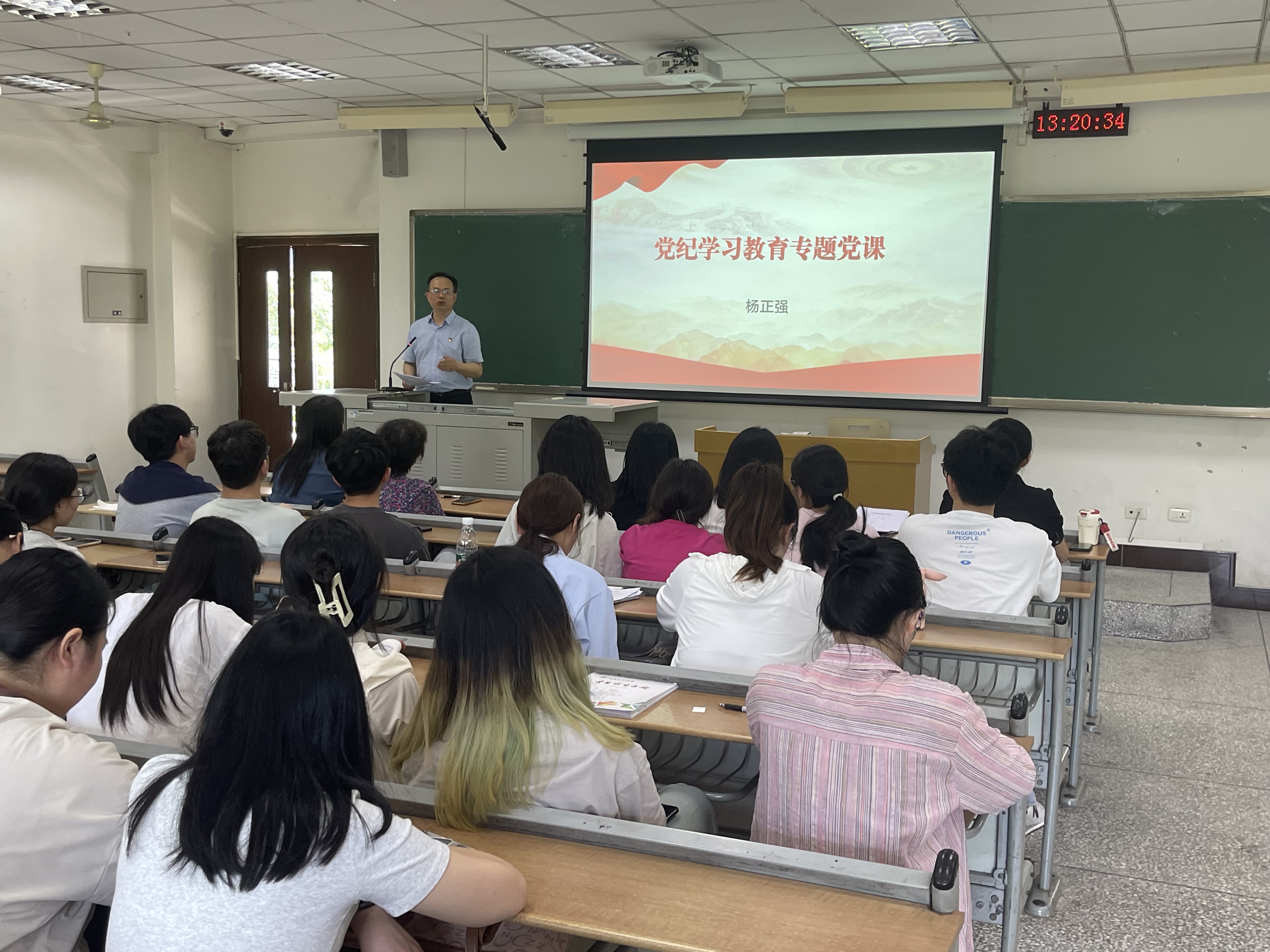 5月22日,公司党委书记杨正强在知津楼D302讲授党纪学习教育专题党课。太阳集团tyc4633员工党支部全体党员参加学习。