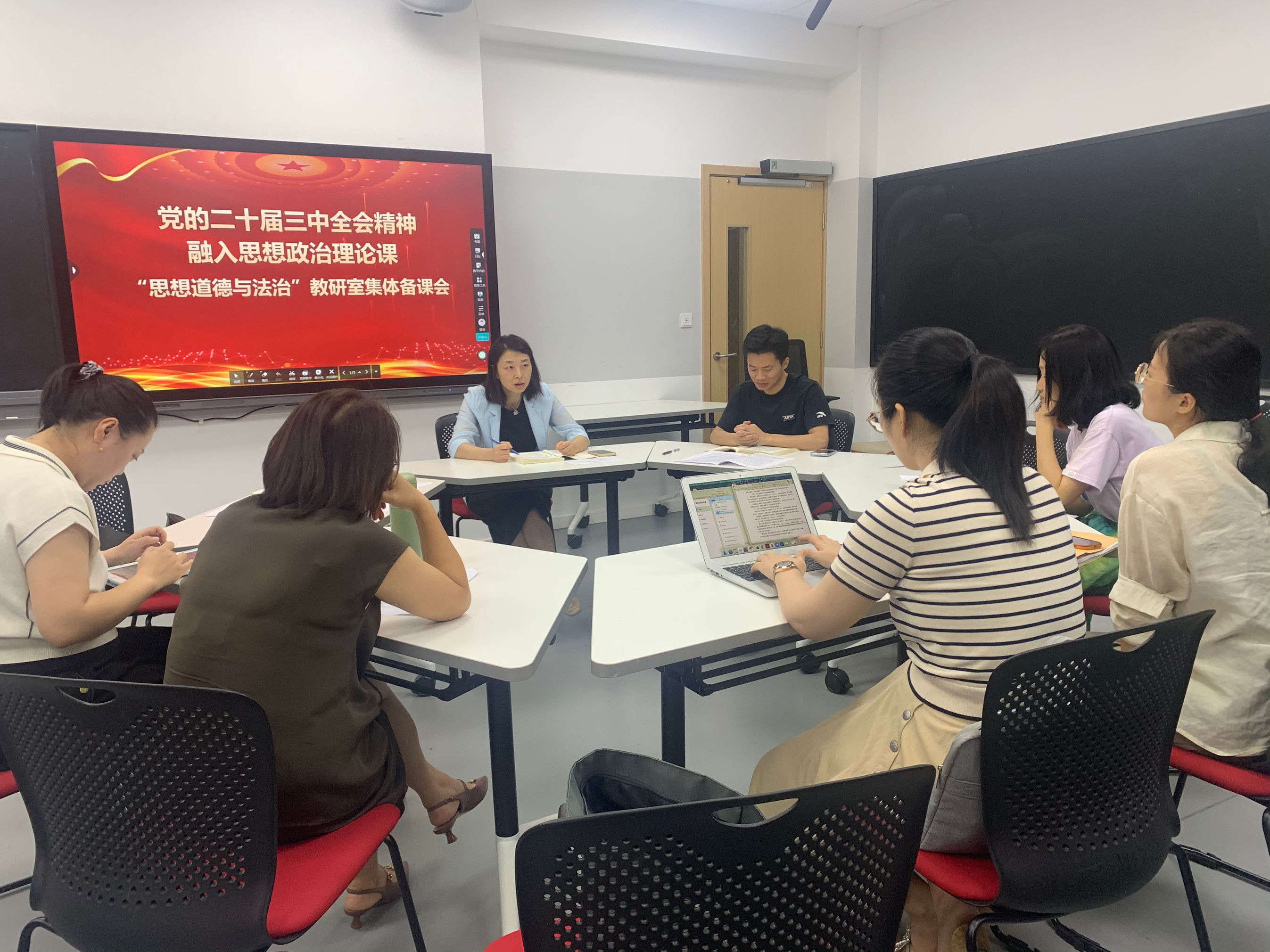 为深入学习贯彻党的二十届三中全会精神,及时将会议精神融入思政课教学,9月29日,太阳集团tyc4633各教研室组织开展党的二十届三中全会精神融入思政课教学集体备课活动,各教研室专兼职教师参与研讨。