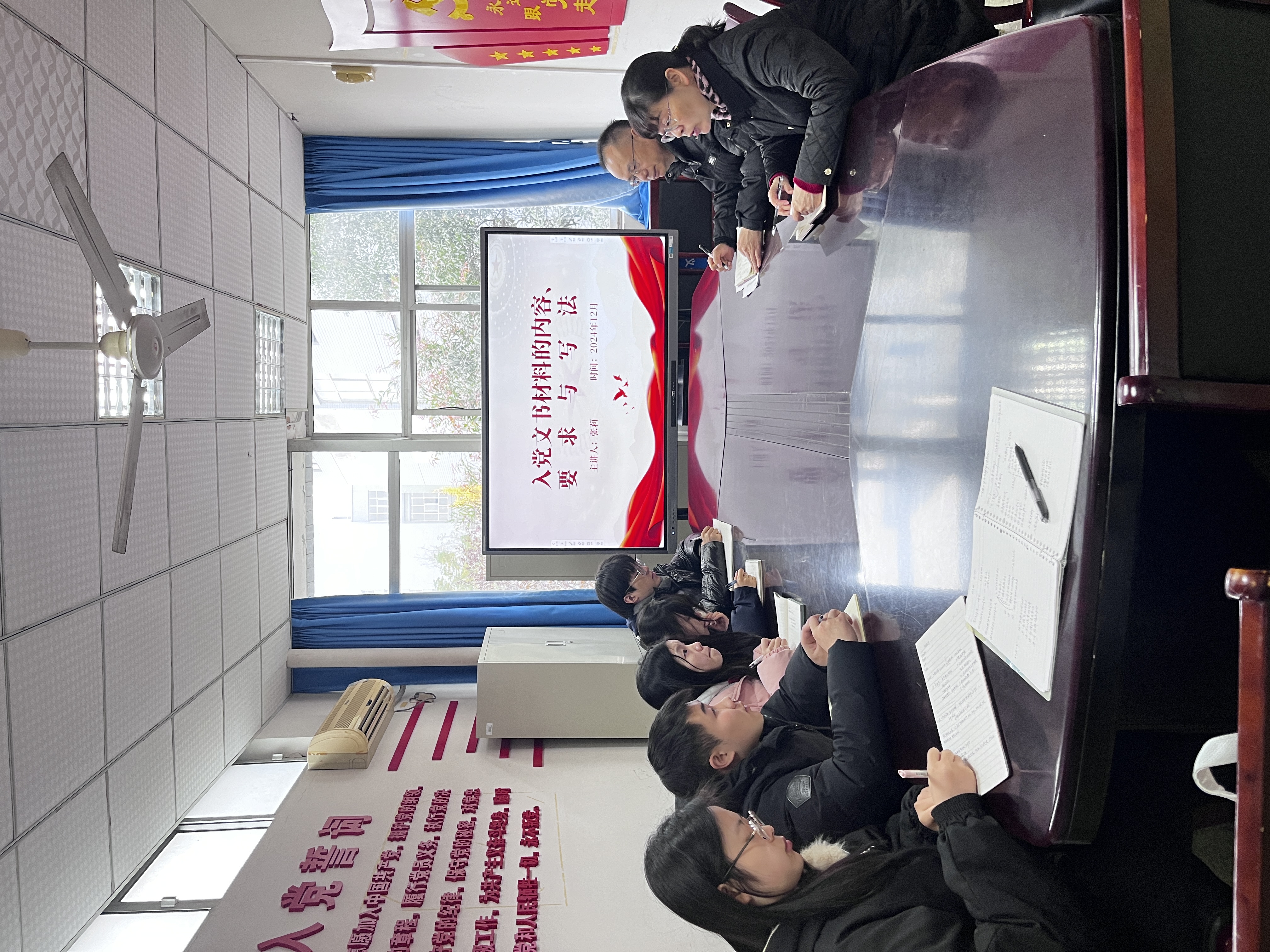 张莉以“入党书写材料的内容、要求与写法”为题,介绍了发展党员工作的基本流程和填写入党志愿书的具体方法,使同学们对入党的整个过程和入党志愿书的填写有了更加清晰而深刻的认识。并结合自身经历剖析了向党组织靠拢的过程实际上是审视自我信念、与自我心灵对话、坚定理想目标的过程,鼓励同学们积极向党组织靠拢,坚定永远跟党走、为党的事业奋斗终生的信心和决心。