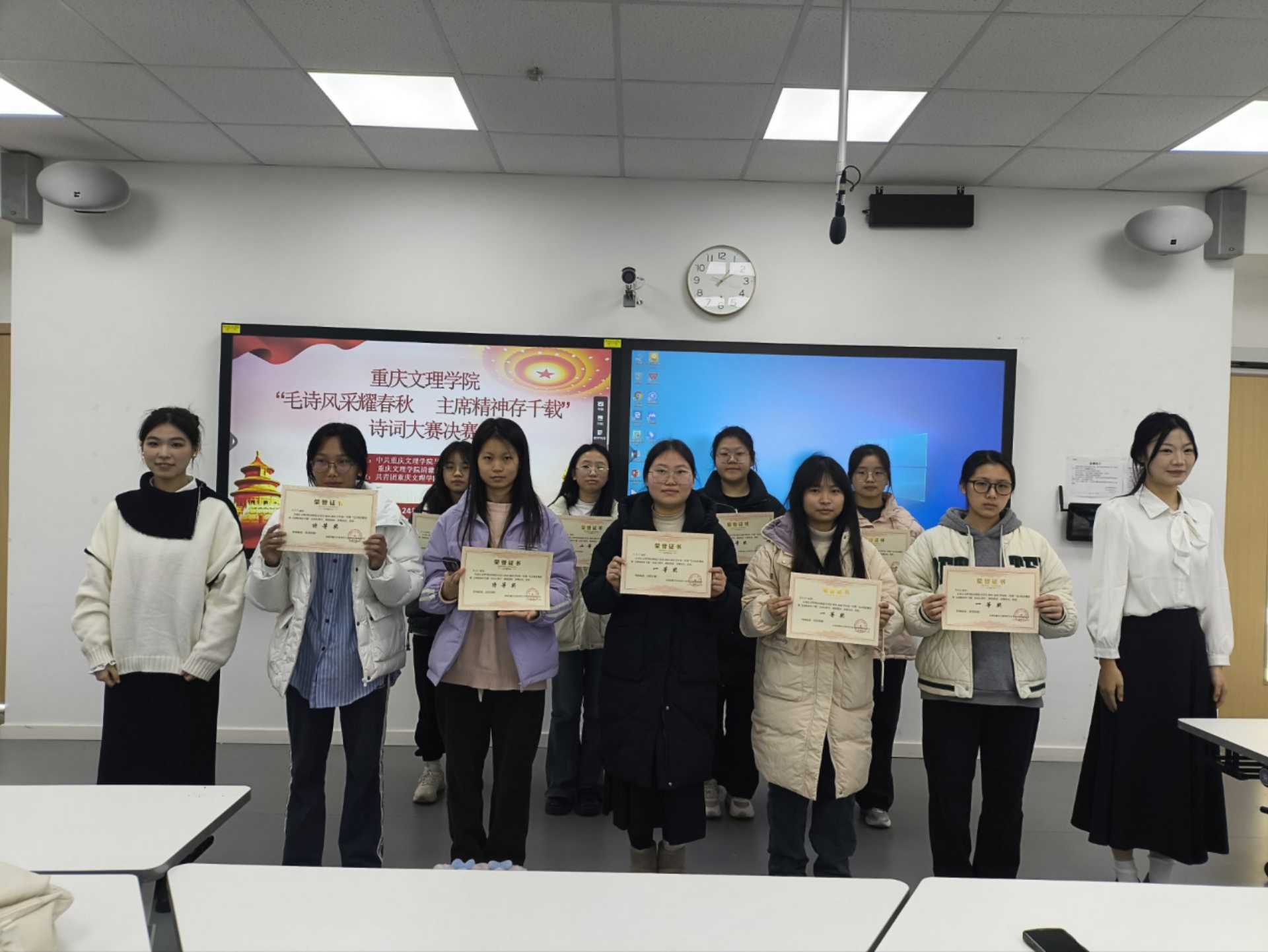 活动过程中,9位选手通过QQ小程序完成了必答题、抢答题并积累得分。竞争虽激烈,但选手们镇定自若,充分展现了他们对毛泽东诗词较为全面的把握和深刻的理解。经过角逐,陈念念、张莎莎2位同学获特等奖,刘茂玲等3位同学获一等奖,周语鑫等4位同学获二等奖。